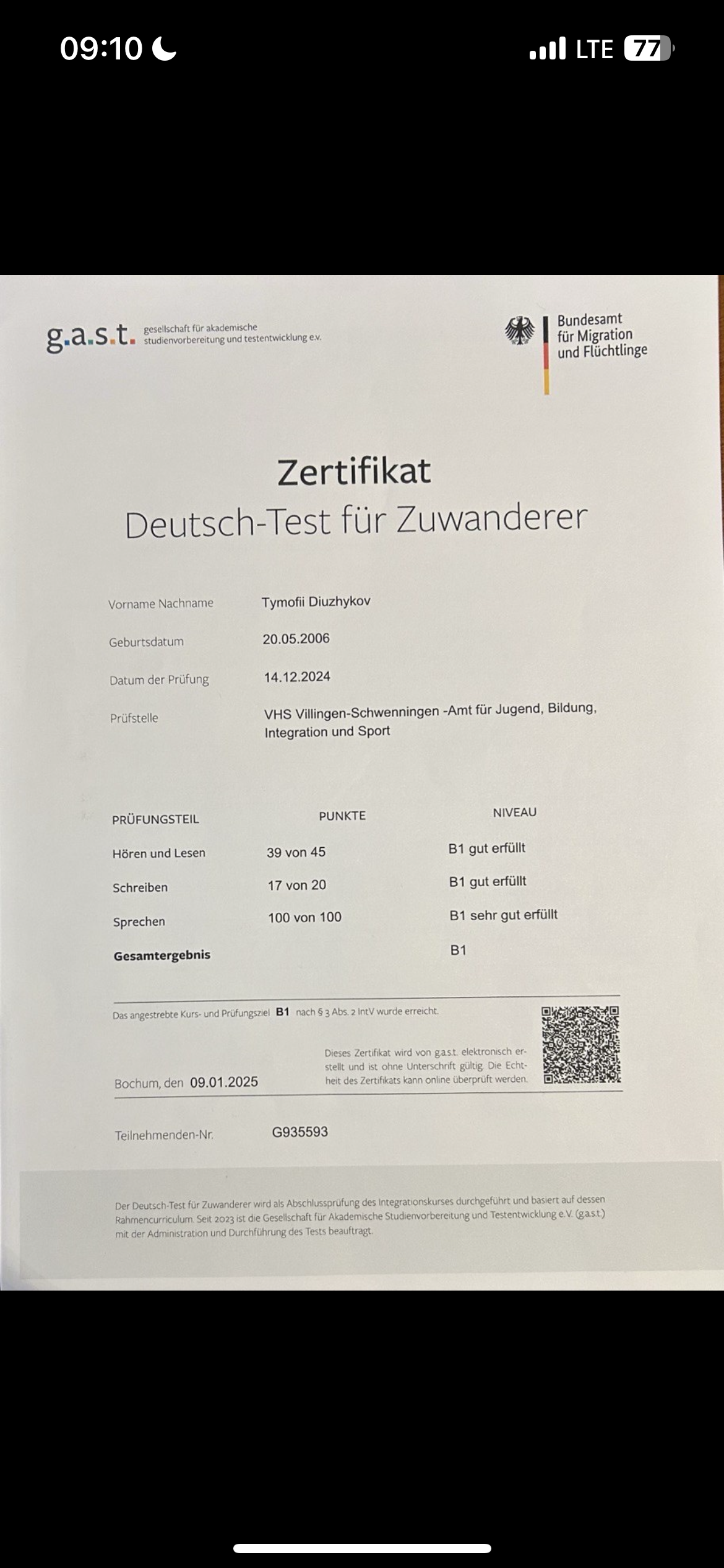 11 Schuljahre abgeschlossen und De Kurs